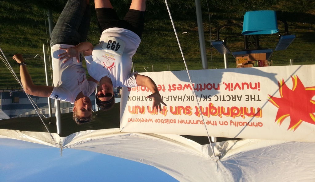 Our Tuktoyaktuk guide Chris greeted us warmly when we entered the small airstrip building. I was wearing Nigel’s We the North t-shirt and bearing our We the North flag. Throughout our journey, whenever I approached people to talk about the North and to pose with the flag, I’d ask if they knew the Toronto Raptors. Almost all said they did, but they did not know the new Raptors slogan We the North–including self-proclaimed Raptors fans. So I figured that the re-branding had not travelled beyond the GTA. That assumption was challenged when Chris looked at me and said, “A basketball fan I see.”
