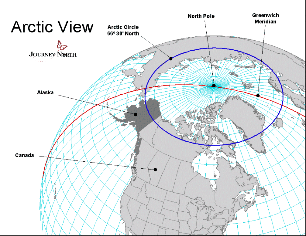 The night before our departure from Toronto, we celebrated Nigel’s 19th in the CN Tower “Top of the World” restaurant. We also drove the “Top of the World Highway” from Dawson City into Alaska. This map however offers an obvious perspective: On Top of the World and we know–ahh now This Is North.
