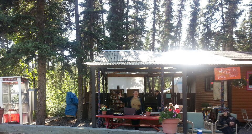 We’ve not had data service for a few days so I am trying to catch up–there is soooo much to write about! I am preparing advance posts to be published every other day while we are canoeing, so as to not innundate y’all. So here I am on wifi in the Robert Service campground while Karen prepares our canoe trip gear and studies the river map. We’ll be canoeing with the Yukon River about 350km to Dawson. True Klondykes!